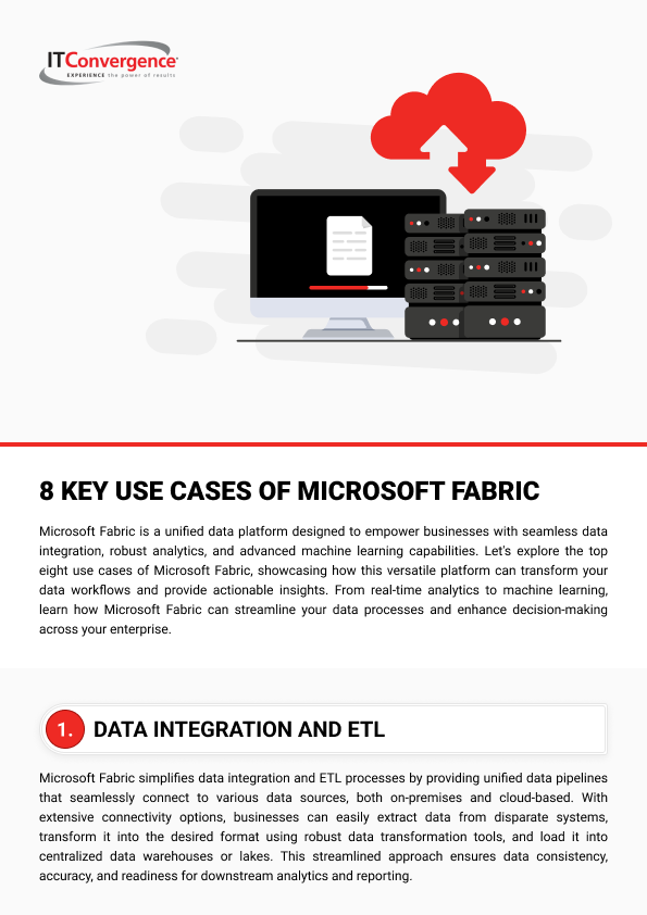 Read this infographic for the top eight use cases of Microsoft Fabric, showcasing how this versatile platform can transform your data workflows and provide actionable insights. From real-time analytics to machine learning, discover how Microsoft Fabric can streamline your data processes and enhance decision-making across your enterprise.