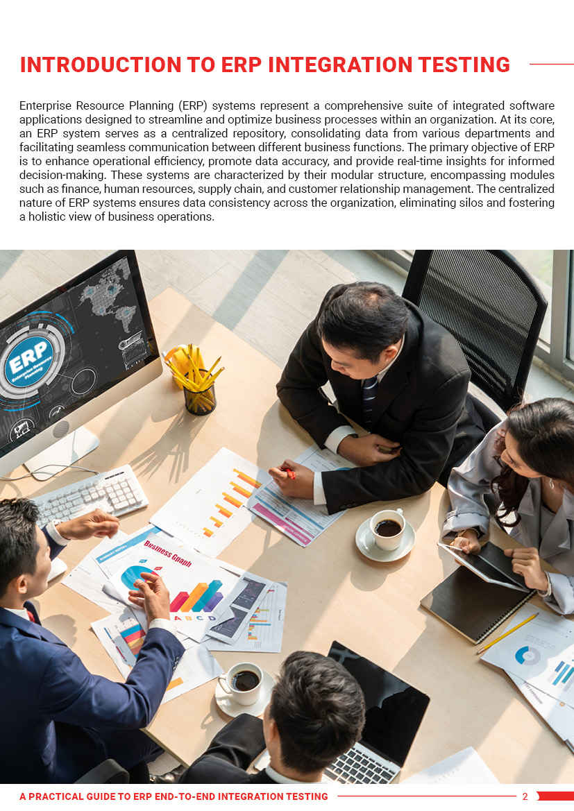In the dynamic business environment, the seamless functioning of Enterprise Resource Planning (ERP) systems is crucial for operational excellence. Our ebook “A Practical Guide to ERP End-to-End Integration Testing” is tailored to empower testing professionals, developers, and IT leaders with practical insights into ensuring a robust end-to-end integration testing strategy.