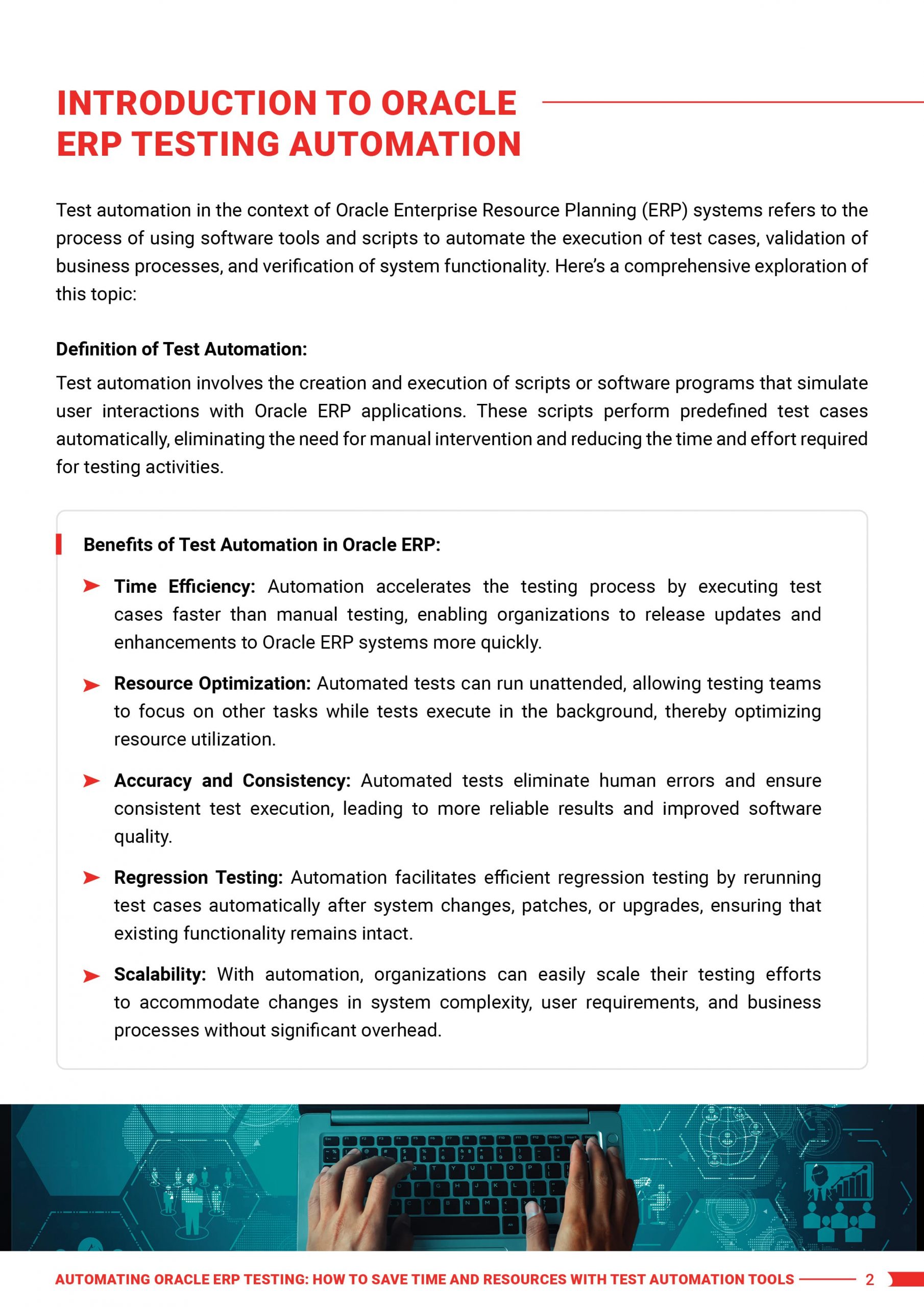 Don’t let outdated testing methods and slow deployment cycles hold your organization back. Download our eBook “Oracle ERP Testing Automation: Streamlining Processes and Boosting Efficiency” to unlock the full potential of test automation and achieve a competitive edge in your industry.