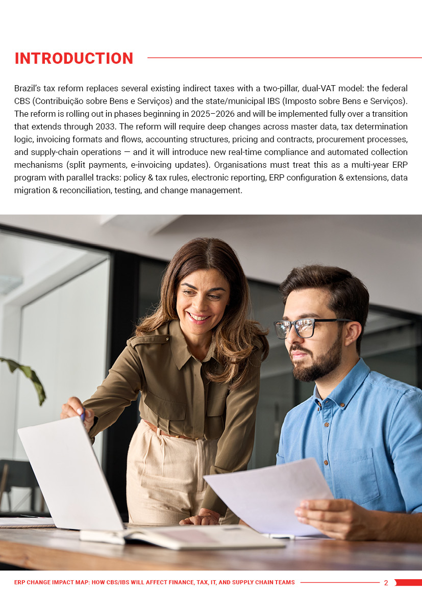 This ebook, “ERP Change Impact Map: How CBS/IBS Will Affect Finance, Tax, IT, and Supply Chain Teams,” provides a practical ERP change impact map, equipping your teams with the facts, risks, and blueprint to prepare now.