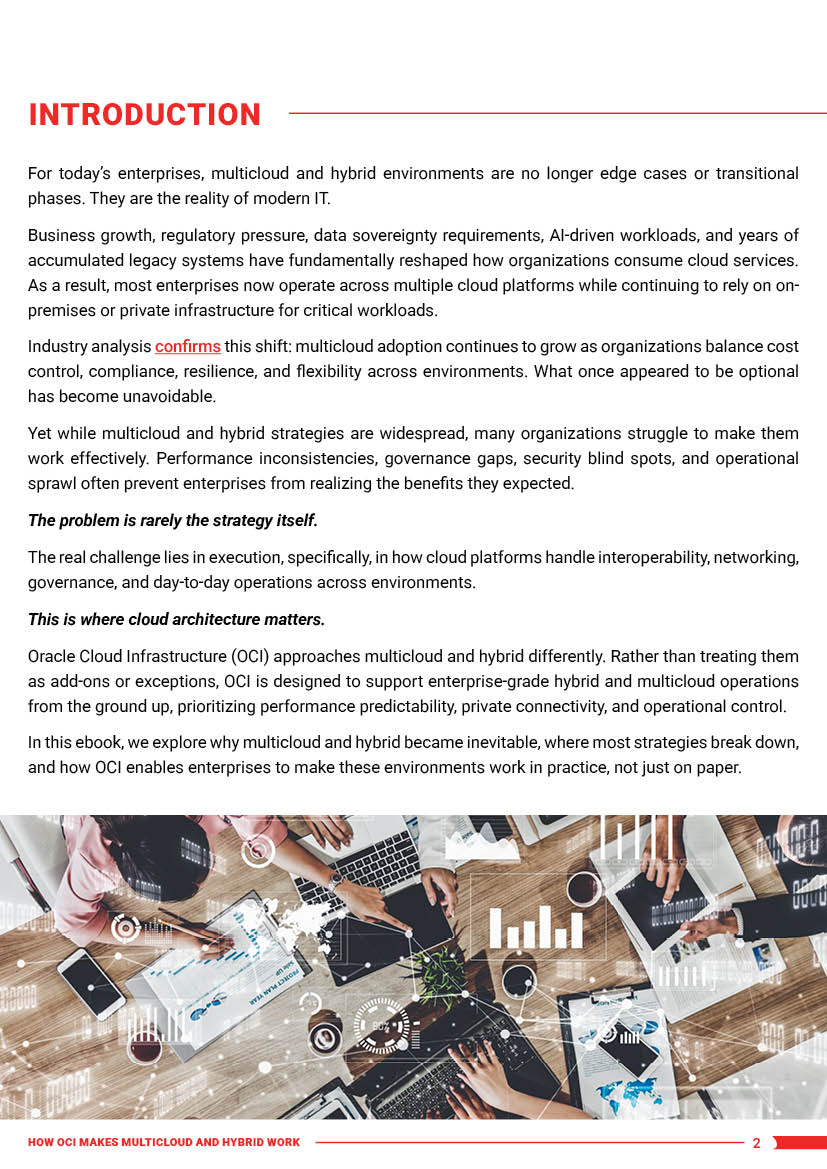 Multicloud and hybrid environments are no longer strategic experiments; they’re the operational reality for modern enterprises. But while adoption is widespread, making these environments work consistently, securely, and at scale is where most strategies fall short. This ebook, How OCI Makes Multicloud and Hybrid Work, examines exactly why that gap exists and how Oracle Cloud Infrastructure is uniquely positioned to close it.