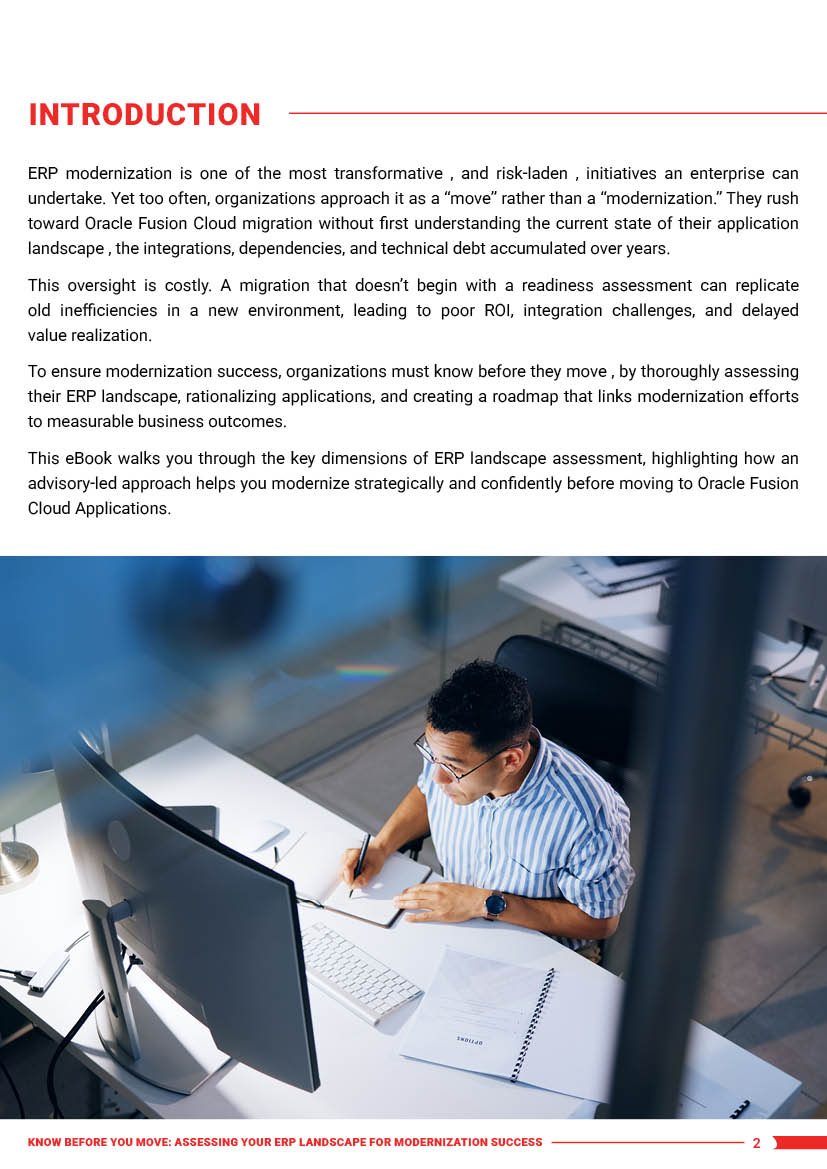 The eBook “Know Before You Move: Assessing Your ERP Landscape for Modernization Success” explains why a readiness-first approach is essential, helping organizations uncover system dependencies, technical debt, and process gaps before initiating modernization.