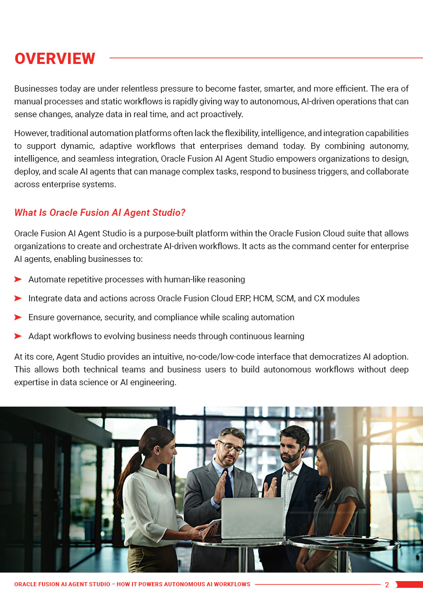 Today’s enterprises need more than automation. They need autonomous, AI-powered workflows that can think, adapt, and act, which Oracle Fusion AI Agent Studio makes possible.