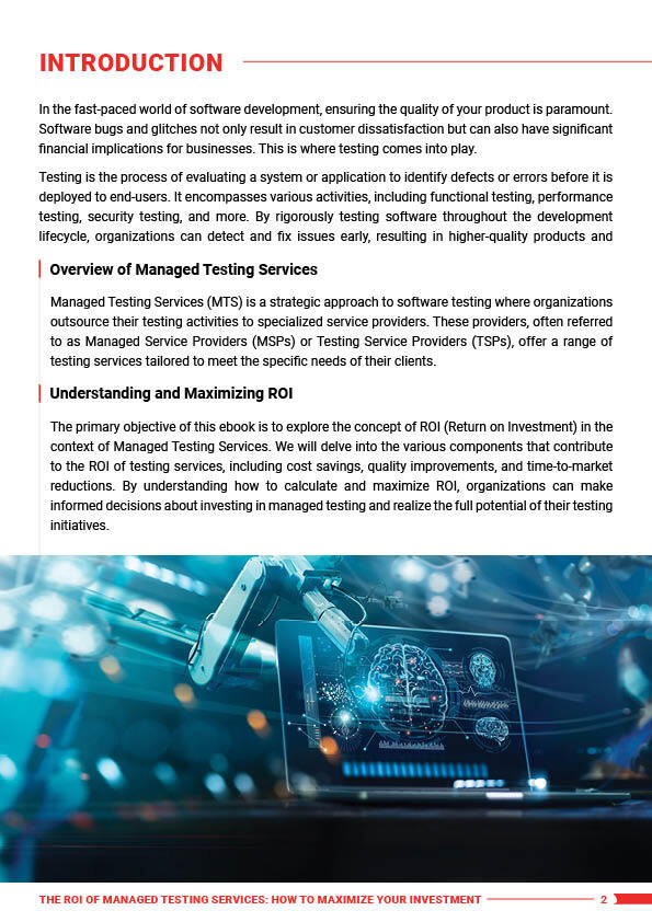 Investing in robust software testing is crucial, but managing it in-house can be challenging. The Return on Investment (ROI) of Managed Testing Services (MTS) offers a compelling solution. This comprehensive ebook, The ROI of Managed Testing Services: How to Maximize Your Investment, unpacks the benefits and unveils strategies to maximize the value you receive.