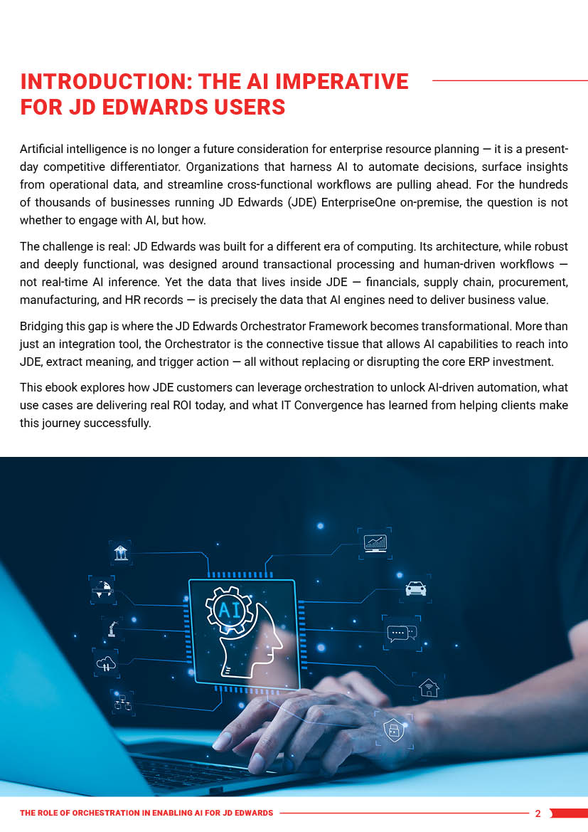 Most JDE customers exploring AI quickly hit the same wall: disconnected processes, hard-coded workflows, and no structured way to connect AI outputs back to ERP transactions. The result is AI that runs alongside JD Edwards but never inside it – adding complexity without adding control.