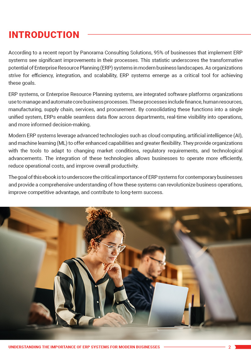 Are you ready to transform your business operations and achieve unparalleled efficiency? Our latest ebook, “Understanding the Importance of ERP Systems for Modern Businesses“, is your key to unlocking the full potential of Enterprise Resource Planning (ERP) systems. Dive into this comprehensive guide and learn how ERP solutions can revolutionize your business processes, enhance data accuracy, and drive better decision-making.